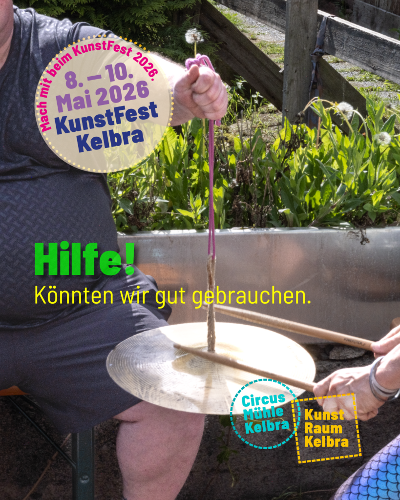 Dann suchen wir genau Dich! Beim KunstFest Kelbra braucht es viele helfende Hände rund um das Hoffest vom 08.-10.Mai. Wenn Du mit anpacken möchtest oder ein paar Stunden Backstage unterstützen kannst, dann melde dich per E-Mail unter: verein@circus-muehle.de bis zum 04.Mai